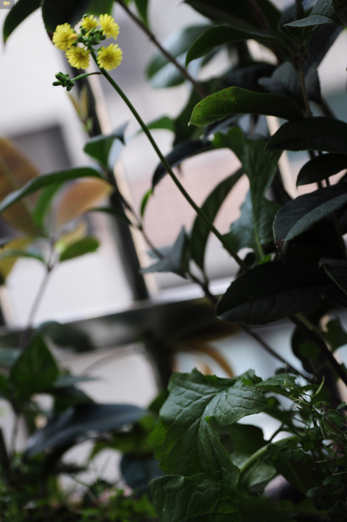 焦距在葉子,光圈大,快門慢,小花有微微隨風而動