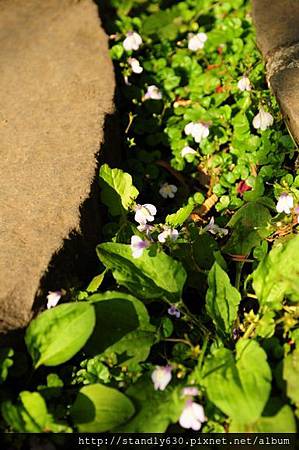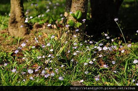 上面是櫻花,中間是杜鵑,小花幾乎是通泉草