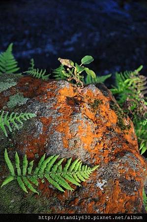 發現這羊齒與這橘紅苔癬,顏色極為相稱