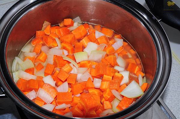 再放入胡蘿蔔,放水蓋過就好